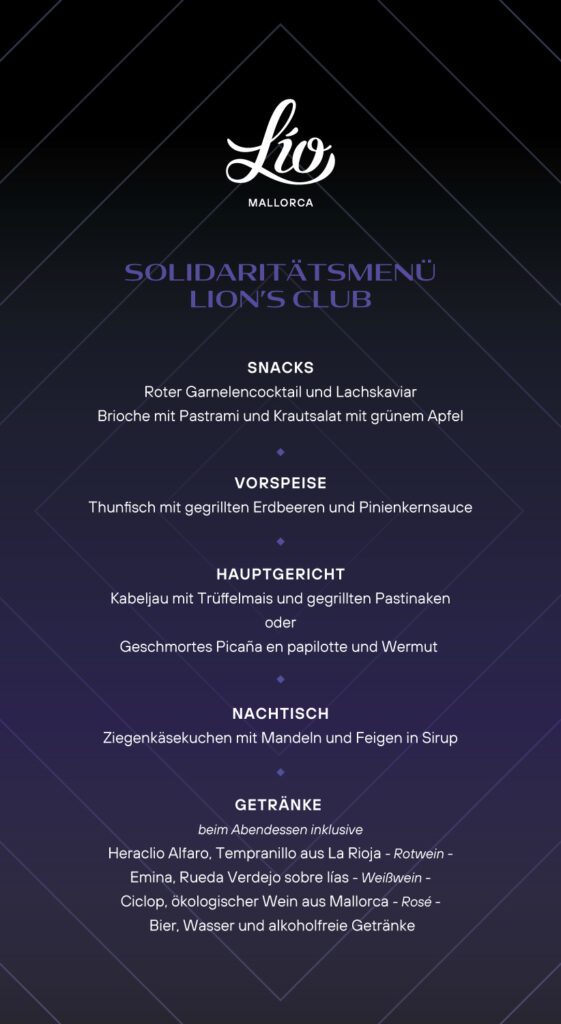 Charitygala am 18. Mai um 20.00h im Lio Club Mallorca zugunsten des Projekts „Essen für Alle“ des Lionsclubs Palma.