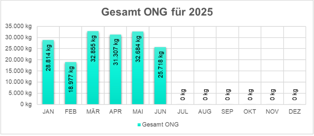 | Geladene Frischware Obst/ Gemüse | 80.709 kg (349.855kg in 2024) |